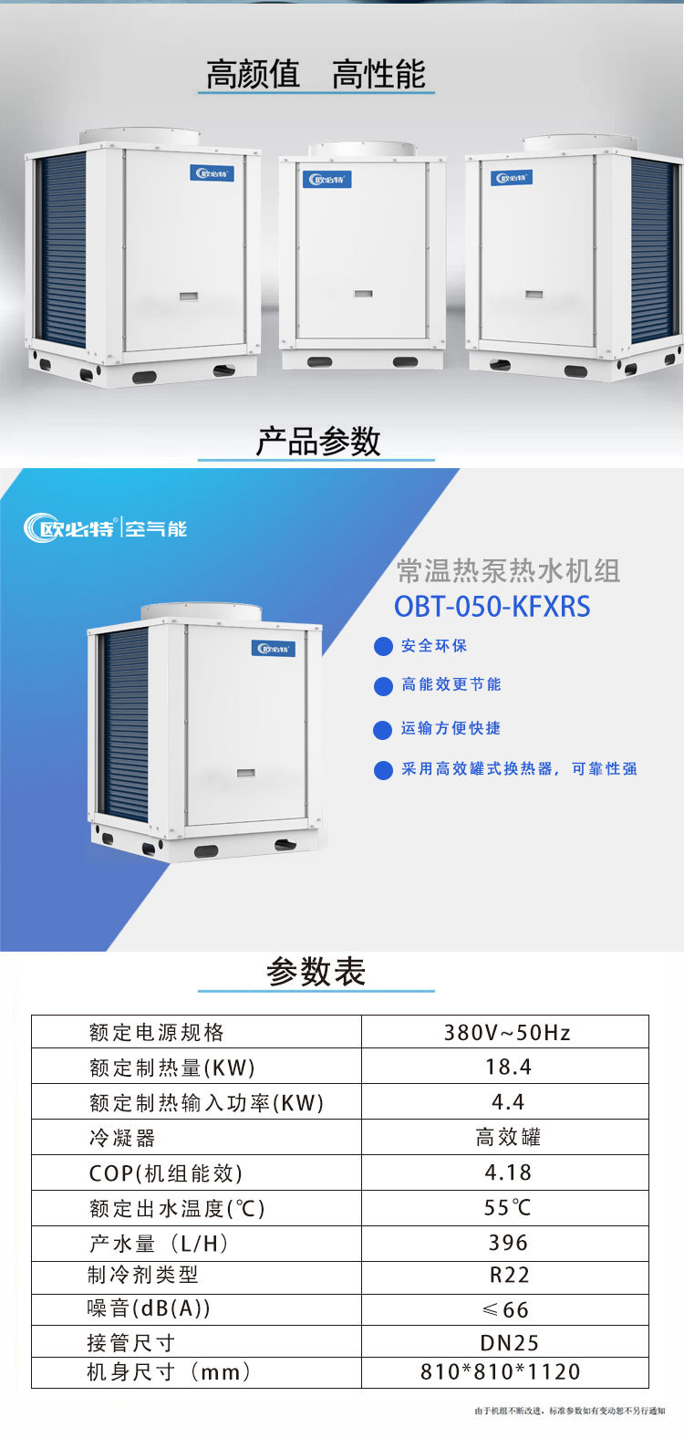 欧必特空气源热泵热水机组:欧必特OBT-050-KFXRS空气能 热泵机 热水机,空气源热泵-定金,5p高能效热水机