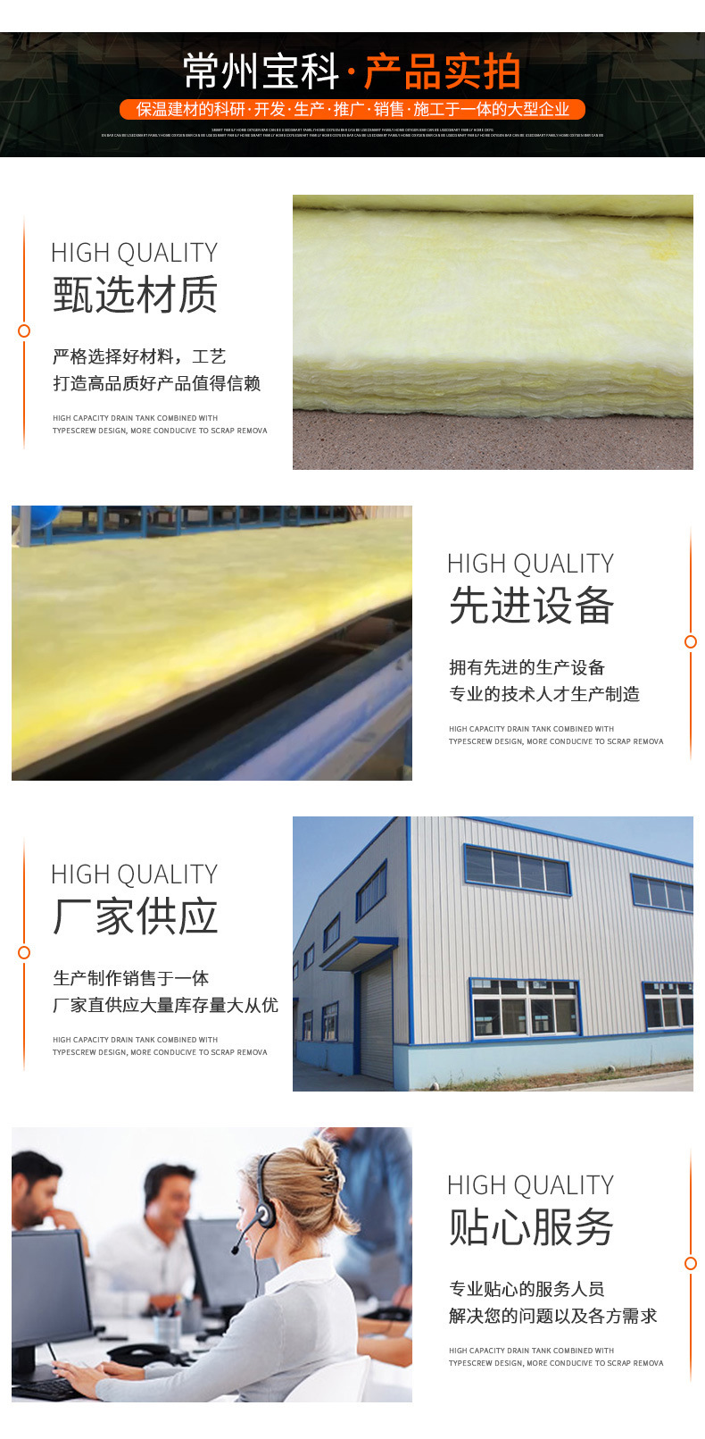 铝箔贴面离心玻璃棉毡钢结构屋顶吸音卷棉毡:宝科1级纤维状玻璃棉毡,带箔1200*12米*50,带箔1200*12米*75,裸棉1200*12米*50,高温毡48K-1200*6米*50,可加工定做/联系客服