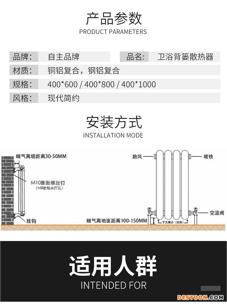 铜铝卫浴背篓散热器: