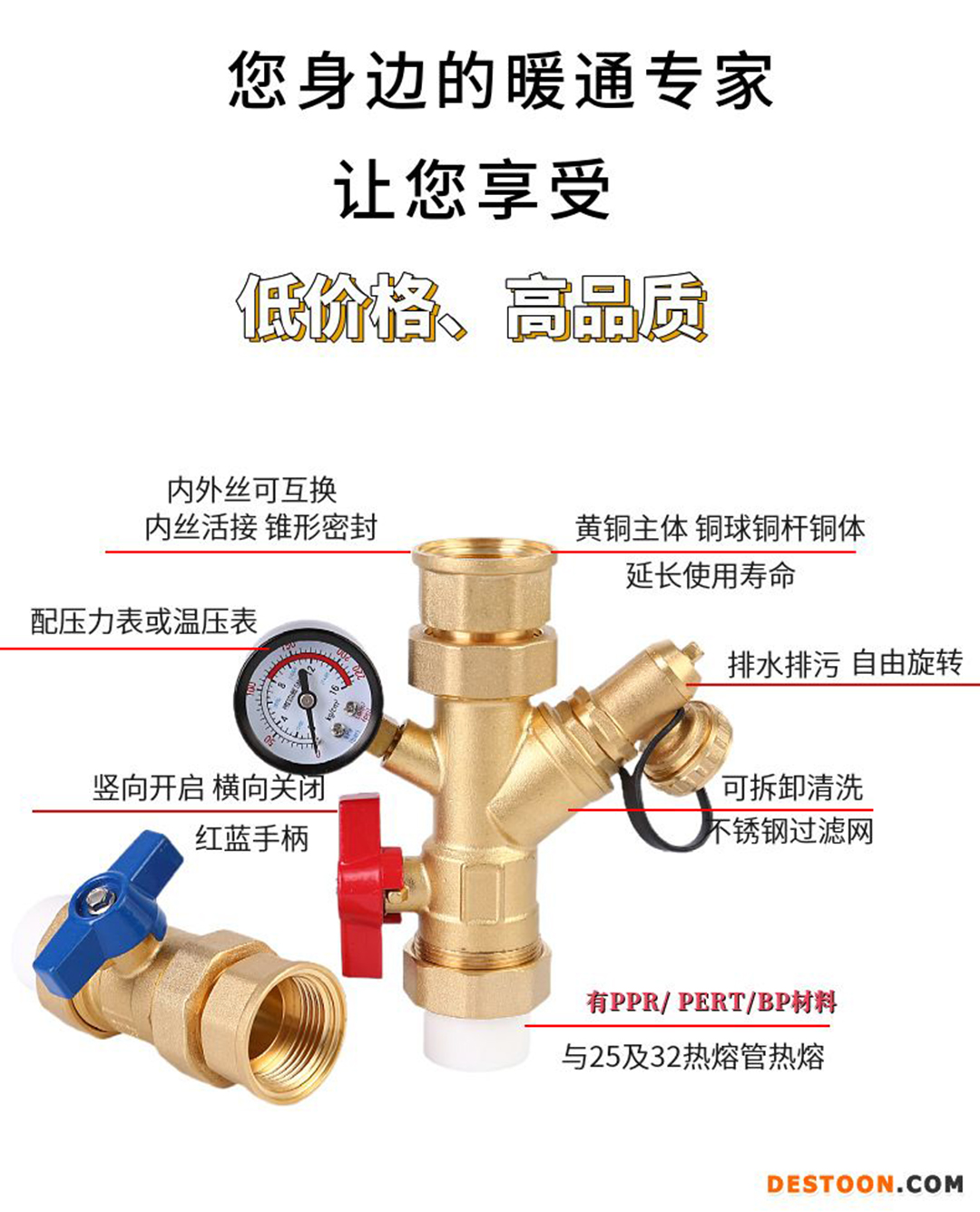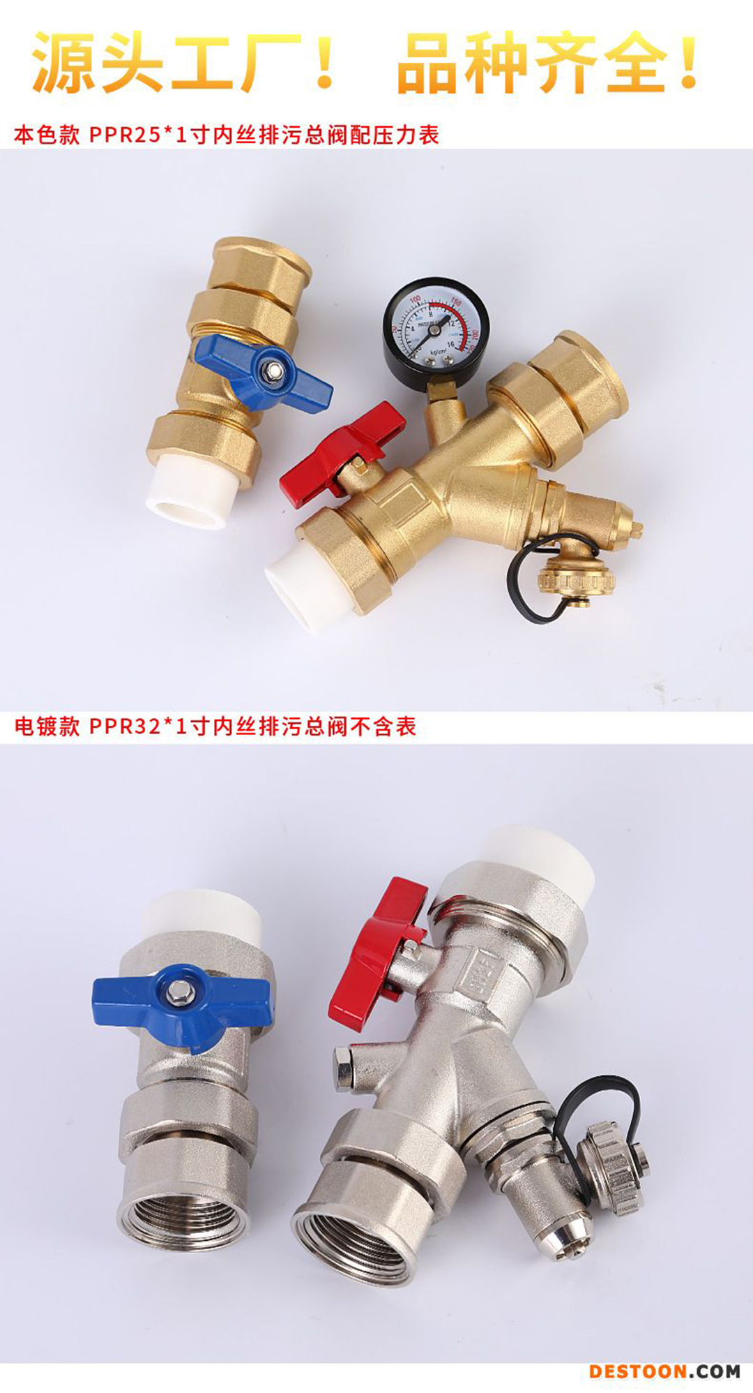 PPR251寸分水器多功能过滤排污球阀 PERT PPR321寸地暖排污总阀: