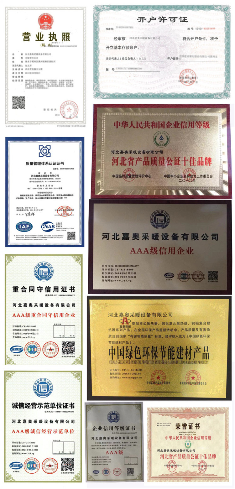 我公司主营产品有钢制柱型散热器,光排管散热器,翅片管散热器,温室大棚、工业蒸汽、厂房车间、养殖水暖散热器,铜(钢)铝复合散热器,双金属压