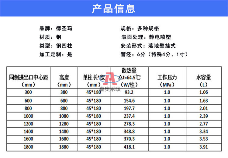 嘉奥钢制暖气片 钢管柱型散热器qfgz406:德圣玛现代简约钢制壁挂式、落地式串片暖气片钢管柱型散热器qfgz406