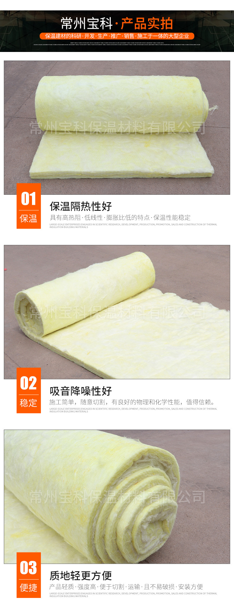 铝箔贴面离心玻璃棉毡钢结构屋顶吸音卷棉毡:宝科1级纤维状玻璃棉毡,带箔1200*12米*50,带箔1200*12米*75,裸棉1200*12米*50,高温毡48K-1200*6米*50,可加工定做/联系客服