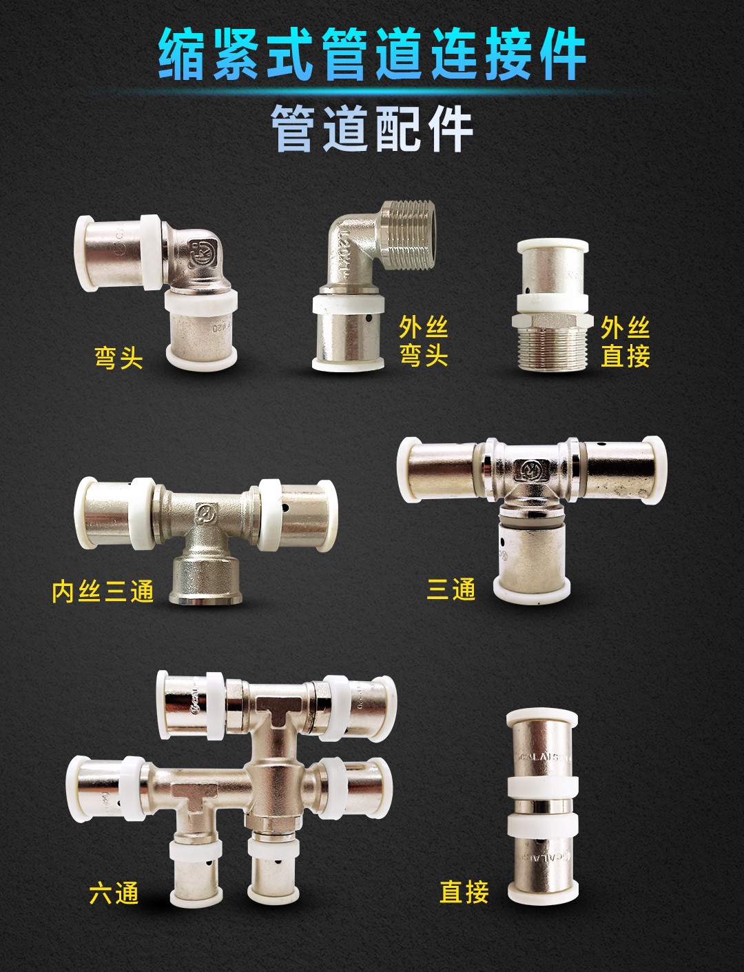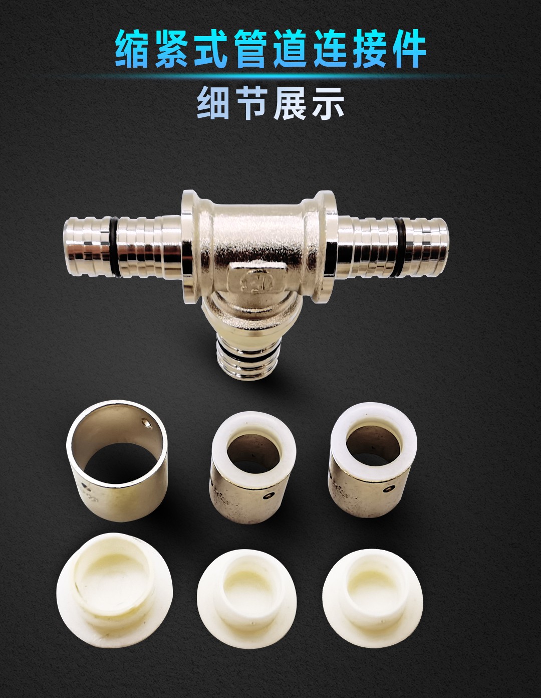 康威斯曼缩紧式管道连接件~外丝直接:有效密封不滴漏,更适于暗埋,安全性更高; O型软密封圈,耐老化,密封效果好,凹槽硬密封; 采用紫铜,表面镀镍,使用更美观,寿命更长。