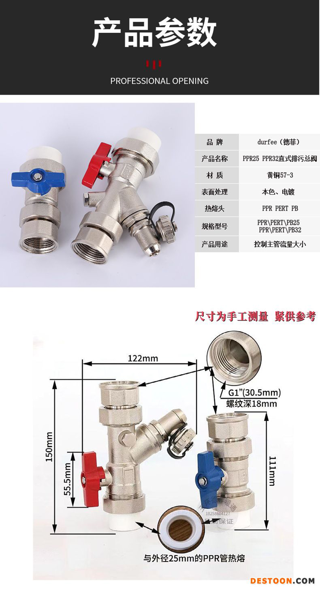 PPR251寸分水器多功能过滤排污球阀 PERT PPR321寸地暖排污总阀:
