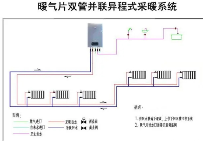 暖气片双管异程式采暖系统